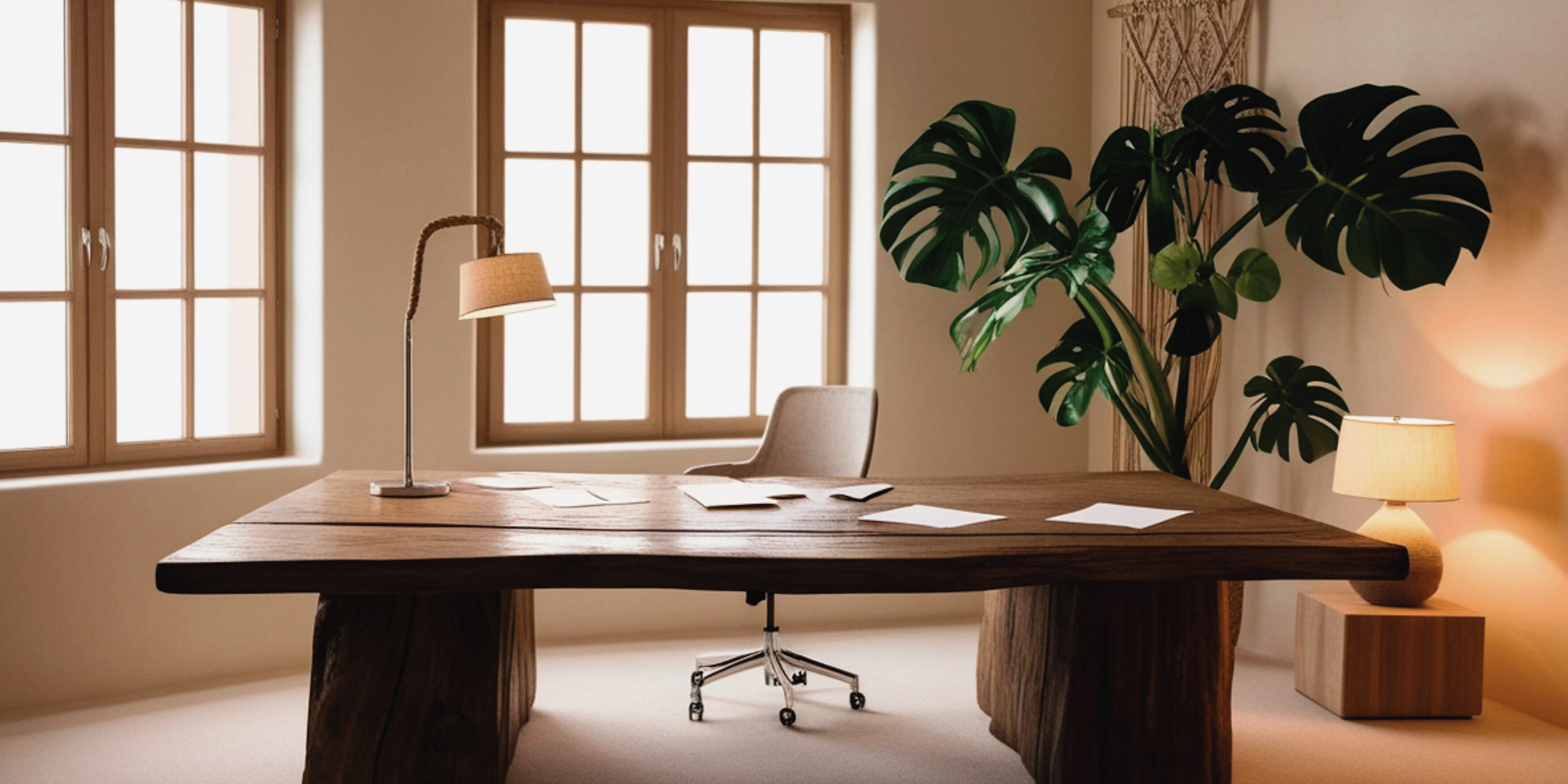 Place your workspace near windows, thresholds, or transitional areas where two environments meet, such as like balcony doors or between rooms.